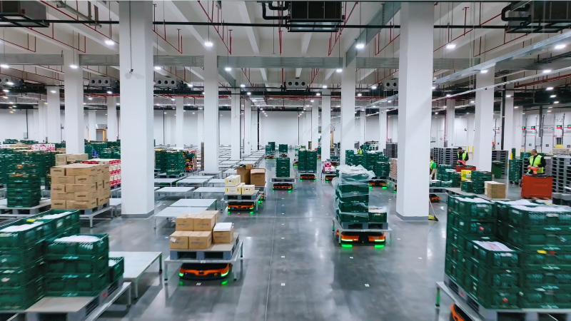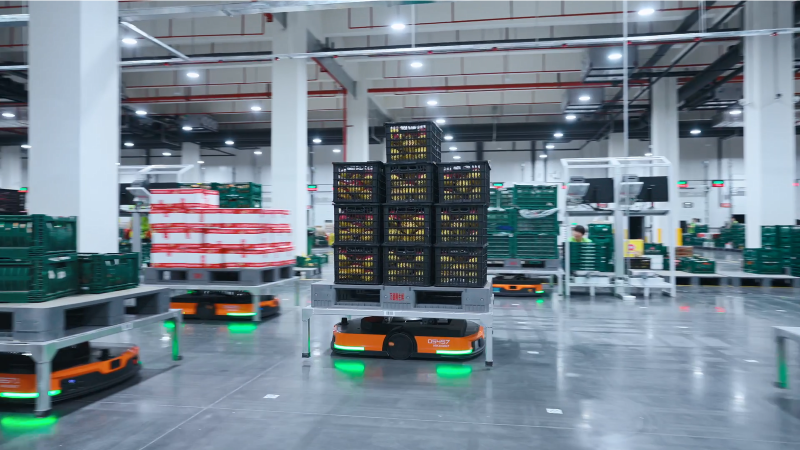 234 robot tự hành AMR đã được triển khai để xử lý các hoạt động nhập hàng, bổ sung hàng, hoàn tất đơn hàng theo mô hình Goods-to-Person (GTP) và xuất hàng trên 5 tầng của một tòa nhà. Giải pháp AMR thông minh còn tích hợp liền mạch với kho tự động dạng thẳng đứng và hệ thống băng tải tự động, giúp tự động hóa toàn bộ luồng intralogistics nội bộ.